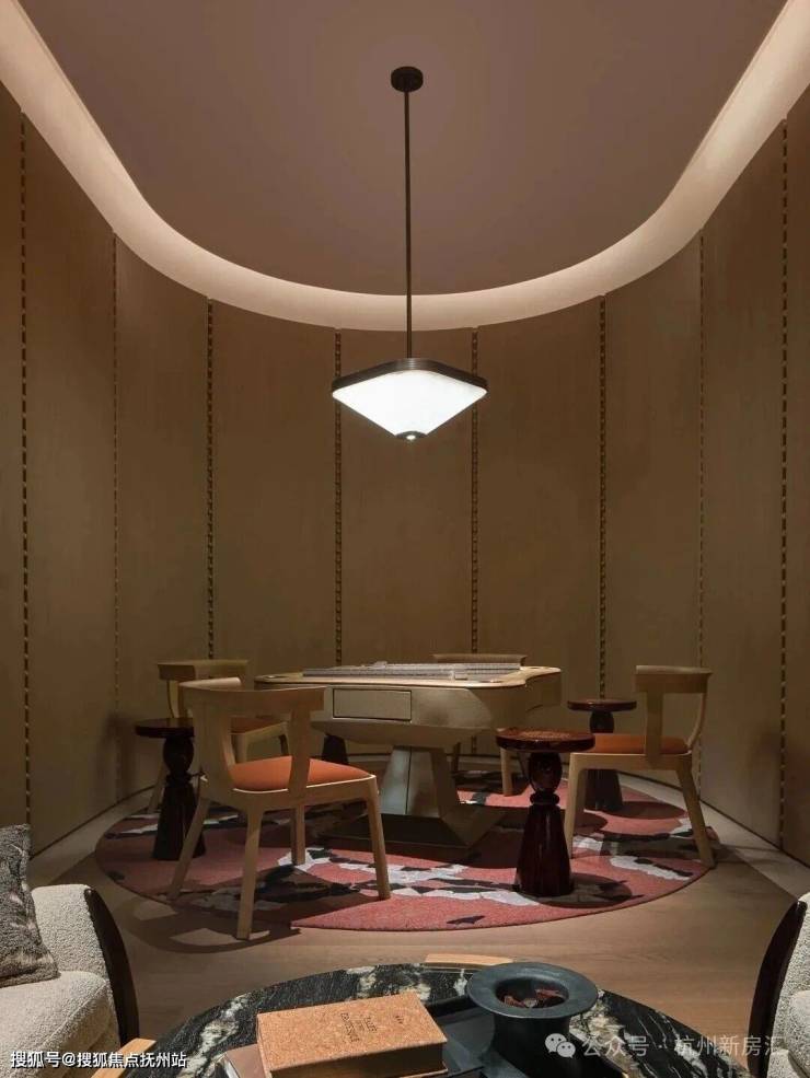 漆砚260㎡户型:户型参考漆砚制作方式,以“玉德”显质地,以“金声”隐赞誉,主卧吊顶还原砚台之形,以漆砚般闪耀琢序空间。