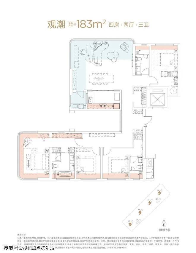 项目只有建面约143㎡和183㎡两个户型,是纯改善楼盘中的豪宅定位。