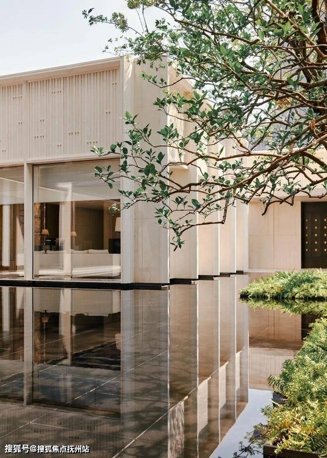 大曲线流行一时,它却独爱横平竖直,灵动弧线只隐现于粼粼水波的反射;五彩斑斓的奢石大行其道,它却固守一色素净,绚丽光彩只在均釉陶砖的表面流转,随天光变幻。