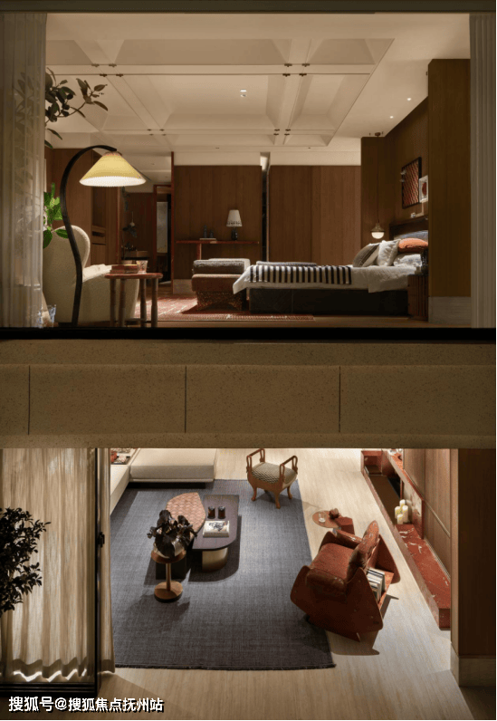 自然韵律的材质色彩:选用原木、天然奢石、洞石等自然材质,搭配米白、焰红等色彩,勾勒出四季更迭的自然韵律,为空间赋予诗意与活力。