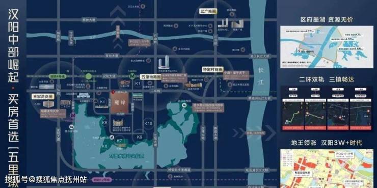 大型商业方面,项目距离王家湾商圈比较近,那边商业中心比较多,包括武汉摩尔城、人信汇、汉商21世纪购物中心、中部名居生活广场等等,另外汉阳热度比较高的万科未来中心VFC距离项目也不远,约2公里。