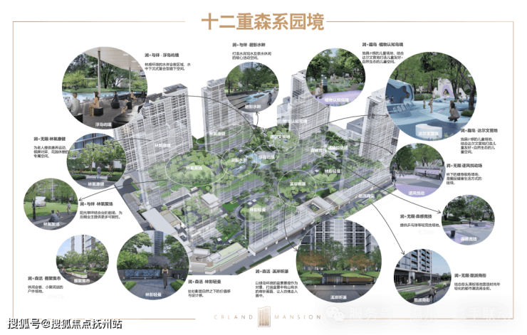 景观设计上,特邀纬图设计创始合伙人、设计总裁李卉,循迹江水文化为灵感,将森系造景手法与当代园林相结合,勾勒都市生活绿岛。 在近4.7万方的园林中,规划三重润心归家体系,打造以“润+与伴”、“润+趣岛”、“润+无限”、“润+森活”四大模块为主题的十二重森系园境。