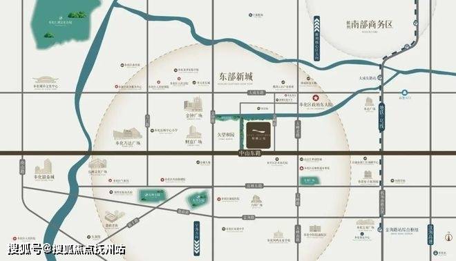 奉化东部新城以沿线TOD站点——大成东路站为轴心,同时机场南路高架沿线、城市核心纵轴线——金钟路、三条横轴线——大成路、中山路、金海路将奉化最为核心的精华尽收,真正让奉化区融入宁波主城。