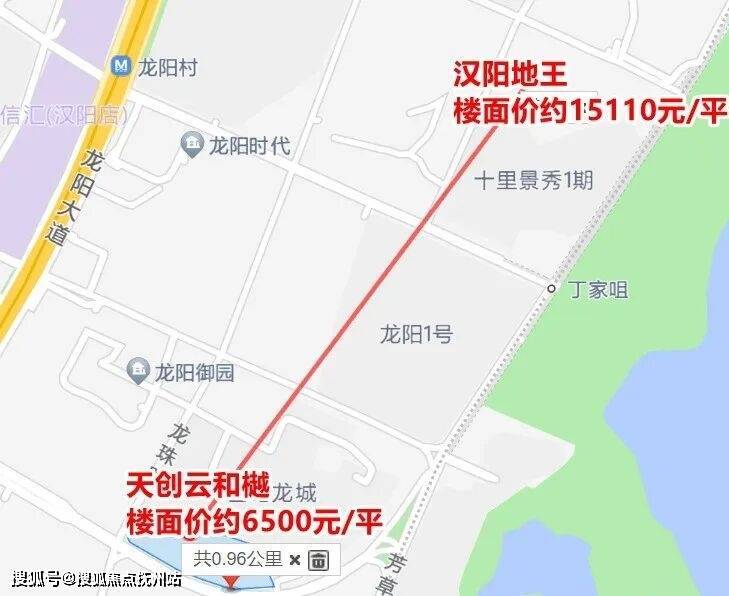 而仅仅1公里不到的汉阳地王,楼面价约15110元/平,天创云和樾的楼面价,连隔壁一半都不到!