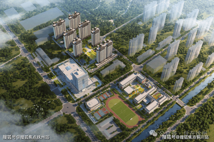 项目效果图:B地块(B区住宅7栋+商业综合体+配套中学)