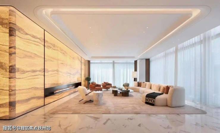 客厅是约18m的看江面,(建面约)160㎡的餐客厅,270度落地窗外,是杭州之门、莲花碗、国际博览中心,这座城市最耀眼的心跳,与你一起闪耀。