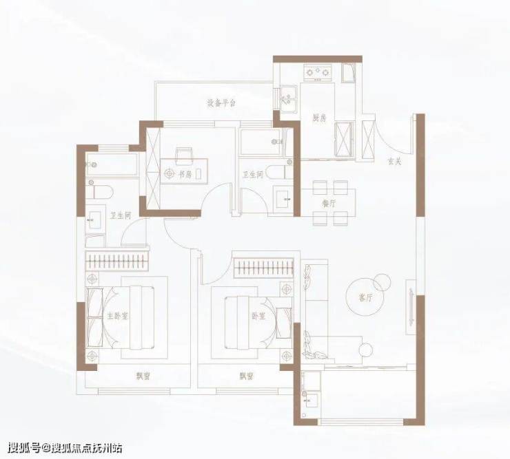 103㎡/113㎡户型较为传统,格局基本相同,3室2厅2卫,只是在尺度上有所区别。
