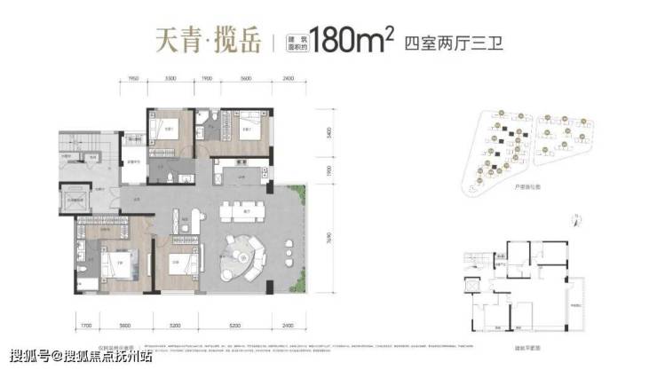 约180㎡四室两厅三卫:私享入户电梯前厅;约270°转角环厅+约7.7米开敞阳台设计,约16.3米超大南向四面宽,巨幅落地窗;入户设备平台,约5.5米面宽主卧,双开门+步入式衣帽间;约5.5米面宽豪华北套卧。