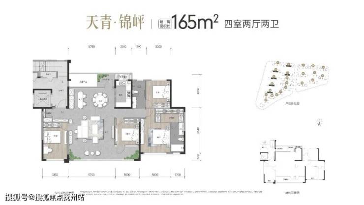 约165㎡四室两厅两卫(可变五室):私享入户电梯前厅;约17.4米超大南向面宽,巨幅落地窗;南北双开敞阳台,南向约8.75米超大阳台空间,北向设备平台空间,主卧约5.5米超大面宽、步入式衣帽间。