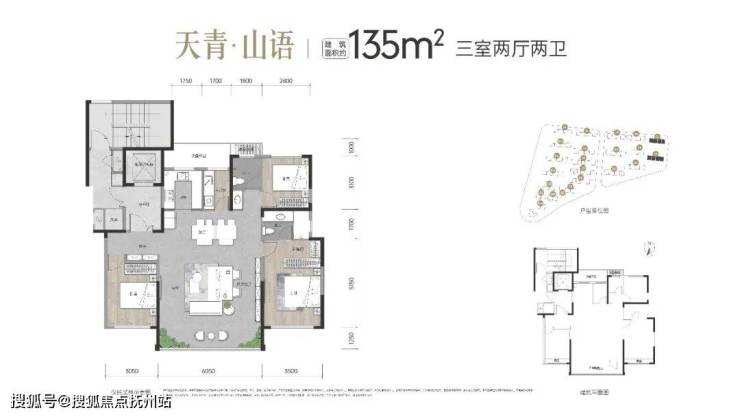 约135㎡三室两厅两卫:私享入户电梯前厅;约12.6米南向面宽,超大落地窗;LDKB一体,约6米横厅连接开敞式阳台;独立实用家政间;北向设备平台;约3.5米主卧套房。