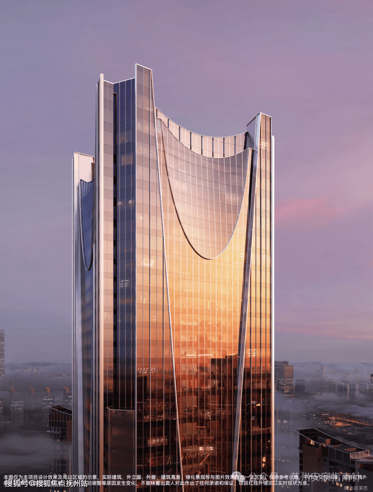 建筑灵感来自自然元素,形成雕塑般的形体:帆形轮廓水滴塔冠宝石切割立面