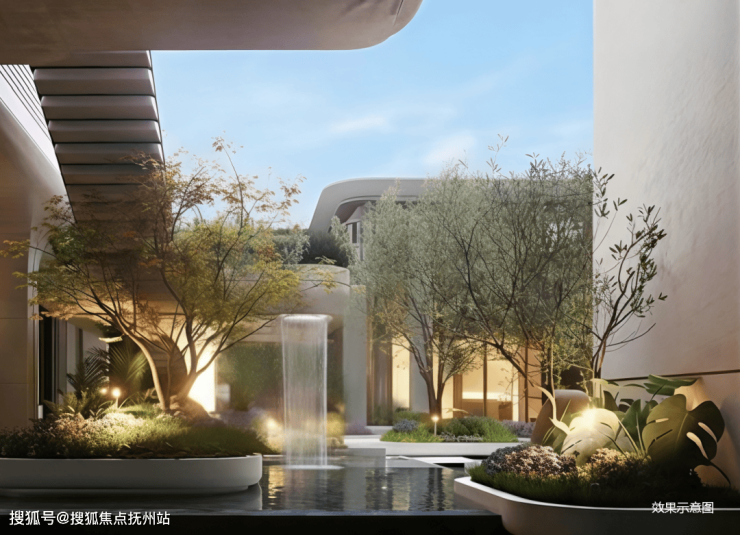 项目依托抬板设计形成“下沉庭院—地面光厅—抬板园林”三重立体景观体系,配置下沉庭院、社交会所、中央水景、阳光地库(含中央车站)、活力商街、抬板园林等。