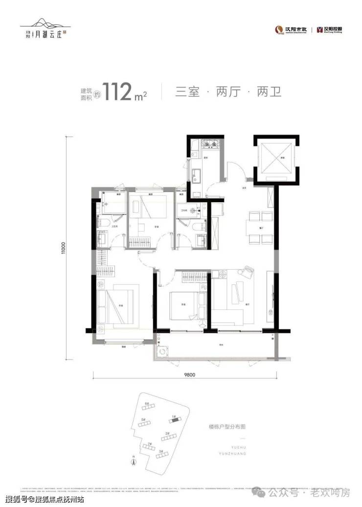 还有建面约112㎡的精致三房户型,飘窗和阳台改造优化后得房率可达81%。户型方正实用,是城市年轻人住进内环江景房的超值之选!
