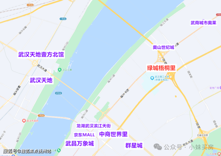 商业方面,3公里范围就是龙湖武汉滨江天街、武昌万象城、京东MALL、中商世界里、武商城市奥莱、奥山世纪广场、群星城,同时和项目仅一江之隔就是武汉天地商圈,这些商业体均在项目自驾10分钟车程范围内。