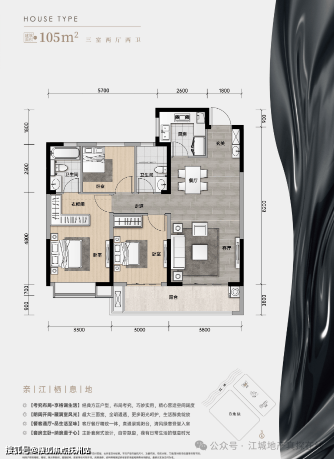 🏠约177㎡一线无遮瞰江阔境,首排滨江,享震撼观江视野(位于A1#边户)(转角阳台户型)