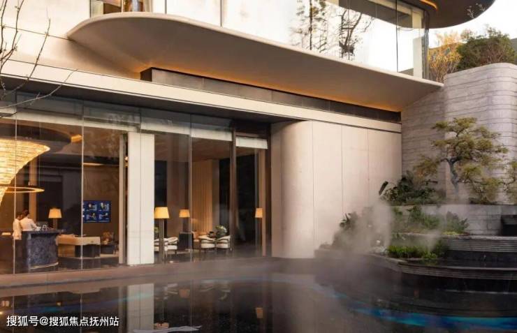 门——“园之,必向幽偏可筑,邻虽近俗,门掩无哗”,门掩藏于市政界面的绿化之后,将“隐与幽”贯彻,强调入口空间的转换感。空间主景以苏州水袖柔美的姿态造型为灵感来源,以玉璧打造顶奢酒店才有的环岛配置,建立期待感和“进入”的仪式。