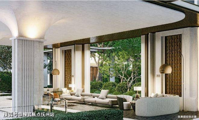 通过酒店式入户大堂,是约200米的无雨归家连廊,将5座风情入户花园和7大行政配套花园有机串联。另外,项目首层最高7米挑高,局部做到二层架空。