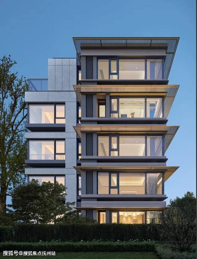 浅香槟金铝板点缀横向金属线条,搭配更多的玻璃窗面和玻璃栏板,在阳光下呈银灰光泽,夕阳映照下更加漂亮。