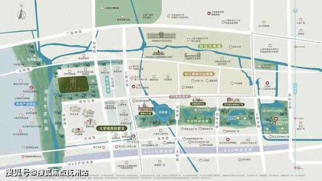 萃屿原墅所在的松江新城高端别墅区北接松江大学城,南临G60科创走廊,东靠政务金融中心,西邻油墩河谷规划,兼具成熟配套与产业动能: