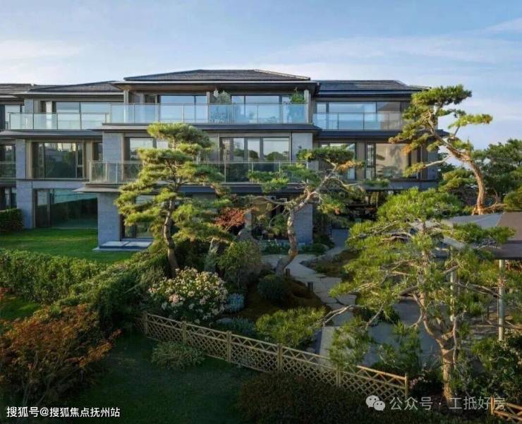 "潮鸣八境"里的四季庭·待霜溯源拙政园,全冠移植200年日本罗汉松,真正实现"推窗见水、枕河而居"。