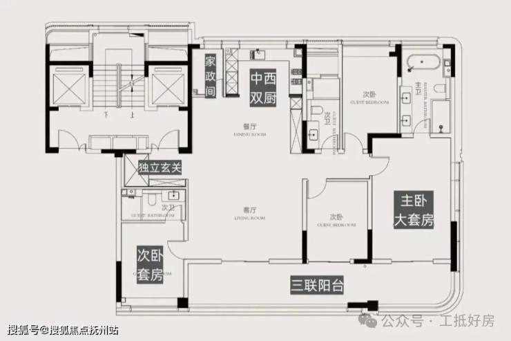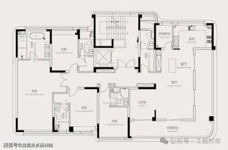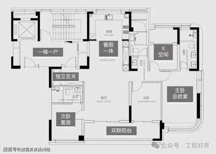 一梯一户一层,双开门入户+主卧双开门,22.4米南向五开间,66㎡LDKG公区+33㎡270°环形阳台(半赠送),四间套房全独卫,下楼直达风雨连廊衔接会所,顶豪配置拉满。