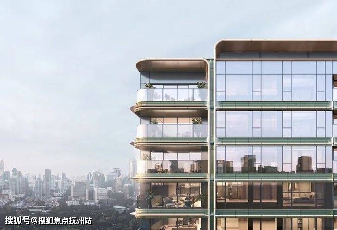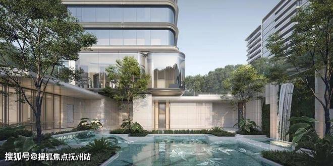 ②丰富的公区配置:下沉庭院、室内恒温泳池与嬉水池(两者通过可开合玻璃立面产生互动)、中轴水景花园会所、空中观景健身盒子。