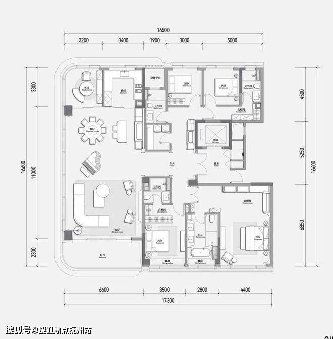 ③经过第三次打磨的经典户型,分别是建面约188-220-280方,惊喜的超高得房率。