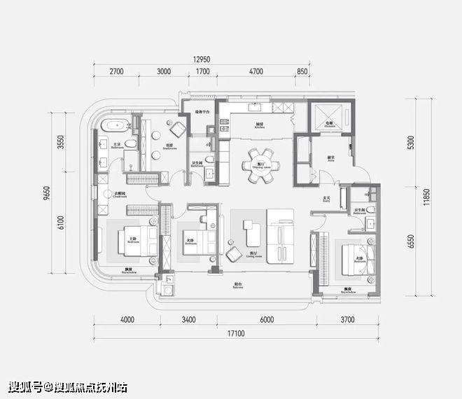 一、建面约188方四房两厅三卫: