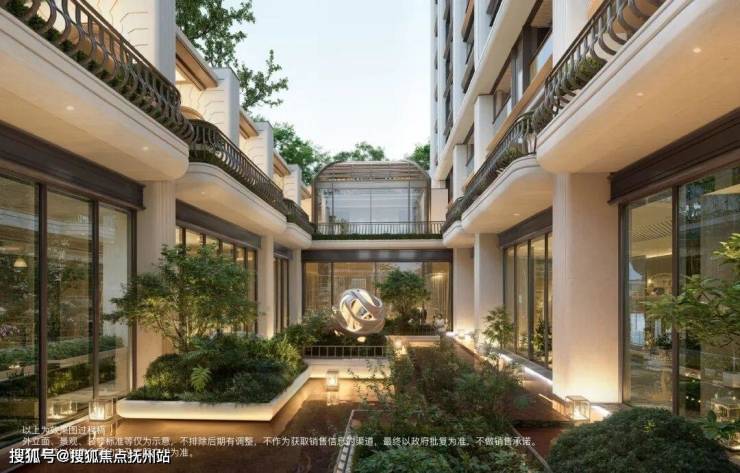 沿着主轴线穿过大堂,映入眼帘的是下沉式庭院,在这里保利特意打造了景观亭,参考罗斯柴尔德别墅的景观亭,代表“步步高升、尊崇显贵”的美好寓意;