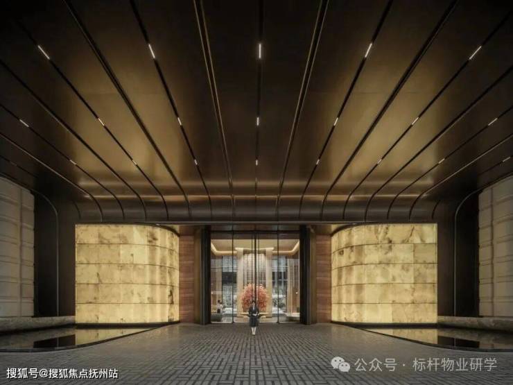 在城市与社区的接驳地带,我们希望以一道“会呼吸的烟火幕墙”重新定义了上盖型物业的界面。主入口以杭州博物馆镇馆之宝“玉琮”为设计原型,将其转译为序列化的柱式与石台。