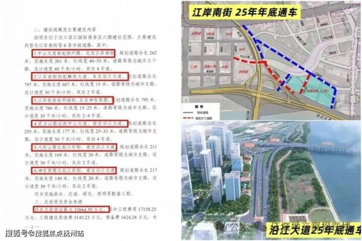 (来源:《市发展改革委关于汉口滨江国际商务区基础设施项目(六期)江岸南街等6条道路工程可行性研究调整报告的批复》)
