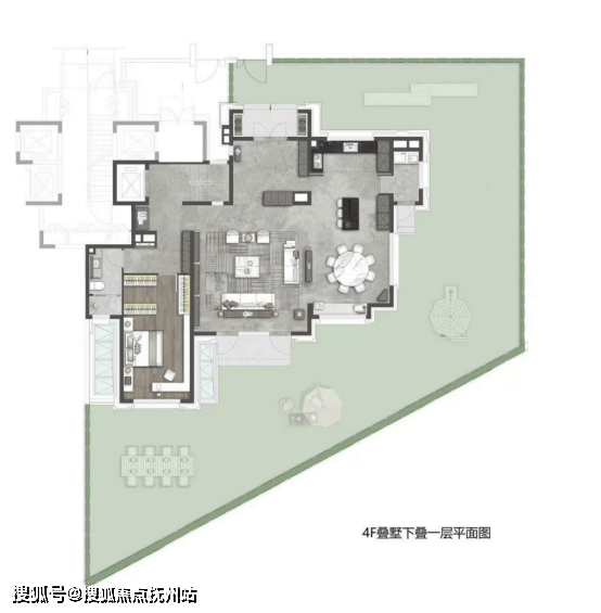 蠡湖金茂府400m²4F下叠的南向开间约达16米,这种面宽带来的不仅是视觉震撼,更是生活方式的重构。客厅沙发区可以从容摆下两组对坐沙发,形成两个独立的会客空间;餐厅可容纳12-16人长桌,节日家族聚餐不再局促;10.2米的横厅进深又足够长,可以隔出一间开放式书房或茶室,形成”泛客厅”概念。天气晴好时,打开玻璃移门,餐厅与花园融为一体,在梦幻花园餐厅中宴请宾客,蠡湖成为最动人的背景板。