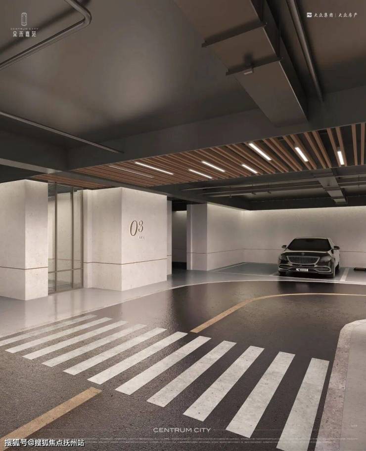 项目车位配比高达1:1.3,采用2层地下车库设计,且通过智能化管理实现人车分流。