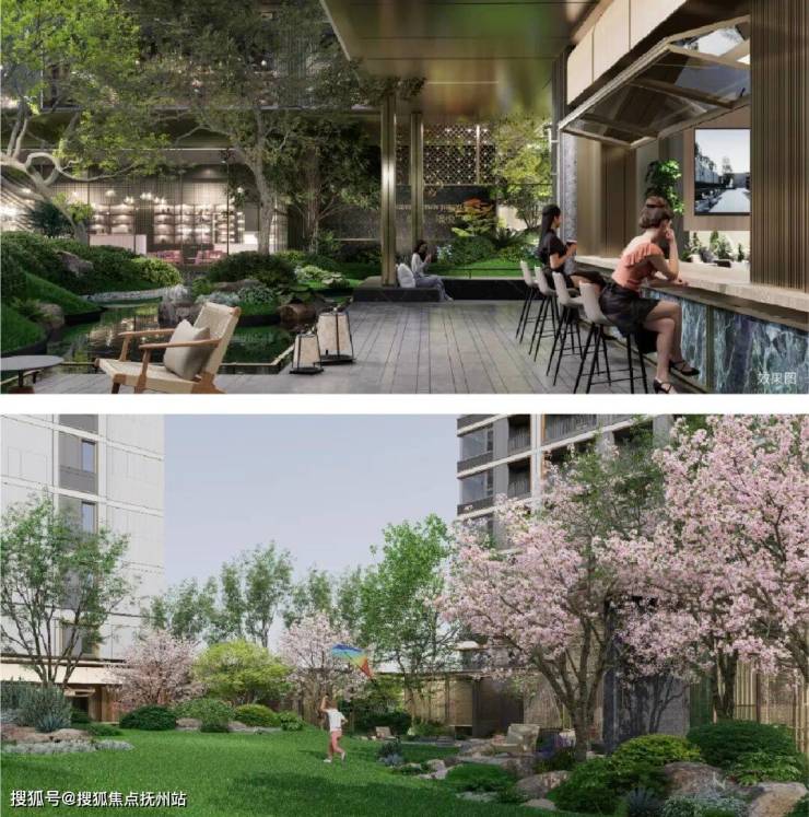 不妨用一组数字来直接描述这些园林组团的规模,可能更让人有规模的感觉。小区里边有约2500平的中央公园、约1000平的度假式宅间花园、约550平的全龄友好阳光草坪、320平的轻亮环健康跑道、180平的开放式水景庭院。