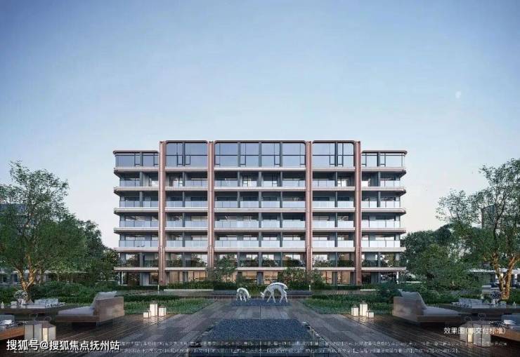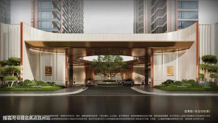 在选材上,项目采用米色石材、铝板和金属镶框进行多元混搭,重点刻画单元入口、入户大堂等细节,质感非常丰富。