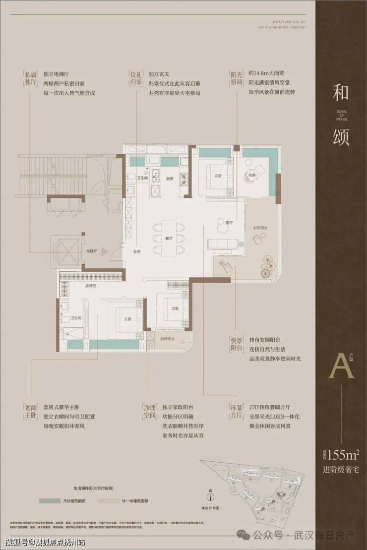 值得一提的是,该项目有15421.52平阳台建筑面积为不计容,户均阳台赠送建筑面积约19平。这是按照“光谷7条”楼市新政执行的,目前招商天青府、驿山高尔夫、万科光谷锦上等盘也是此类标准,户型在面市时会有2个面积计算方式,一个是建筑面积(阳台算一半),一个是计价面积(阳台全送)。而且光谷的规划标准和武汉市的有冲突,因此此前同类项目购房合同、房产证据说都是按大面积计算(建筑面积,阳台算一半),而项目所有户型计价面积之和(阳台全送)等于项目计容建面。因此大概可以理解为阳台面积是规划送给了开发商,但开发商是按一半面积的正常计算方式卖给购房者了。当然开发商这部分是没有土地成本了,因此户型如果按照大面积计算(建筑面积,阳台算一半),单价理应低一些才合理。