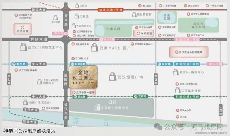 商业上,小区被武汉高奢商场环绕,最近的就是恒隆广场,步行200米左右就到了,同时摩尔城、K11、武汉国际广场距离项目的直线距离也不超过400米。