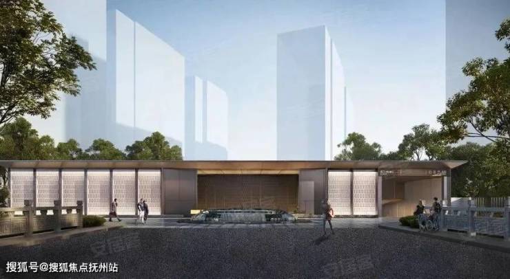 社区大门长约50米,通过约90m廊桥入园,搭配酒店式涌泉落客岛庭院,叠瀑水景,环岛喷泉。园区以沧浪亭为灵感,打造“三轴六境六园七会所”布局。