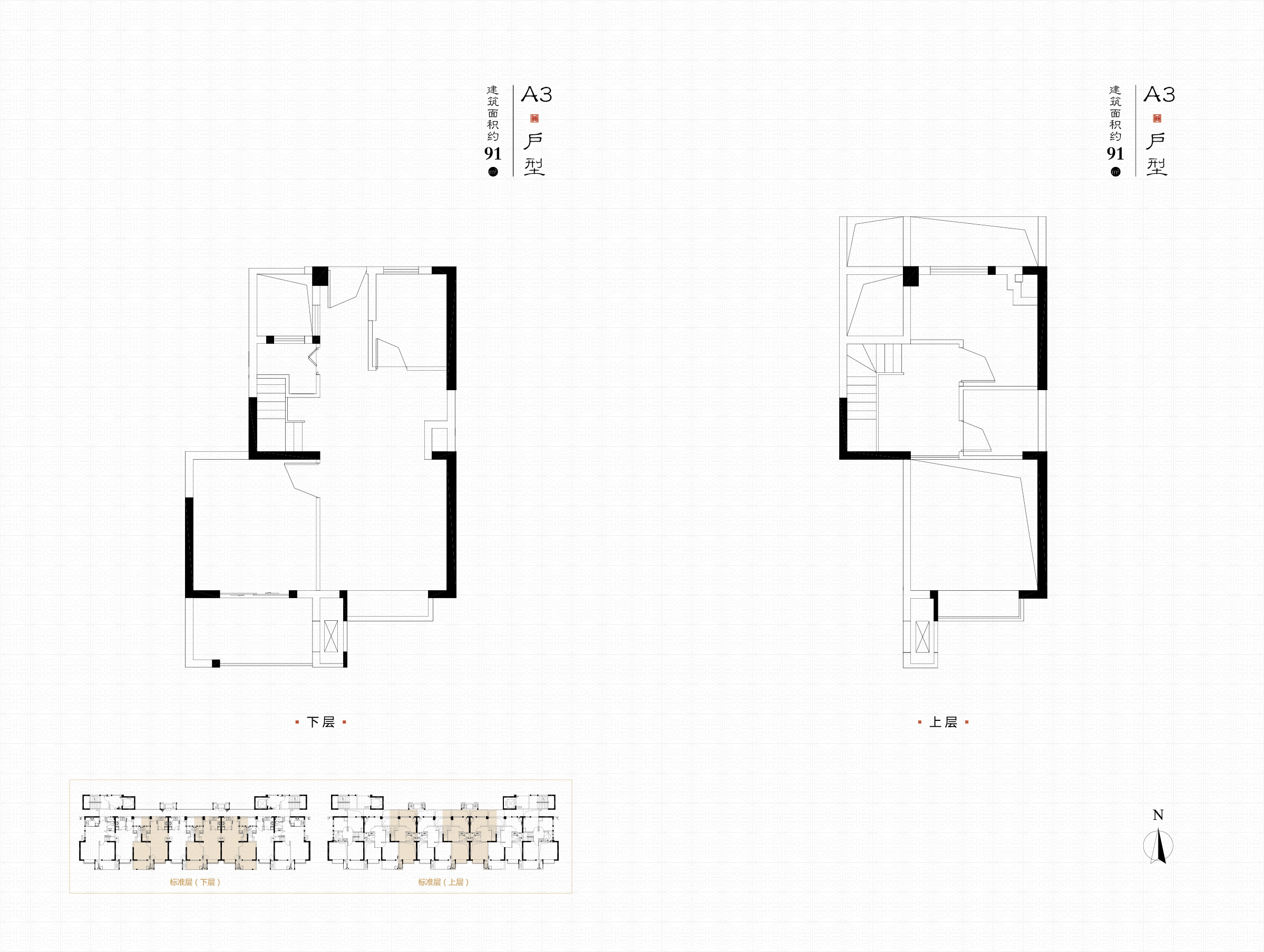 3室2厅2卫-A3户型 建筑面积约91㎡