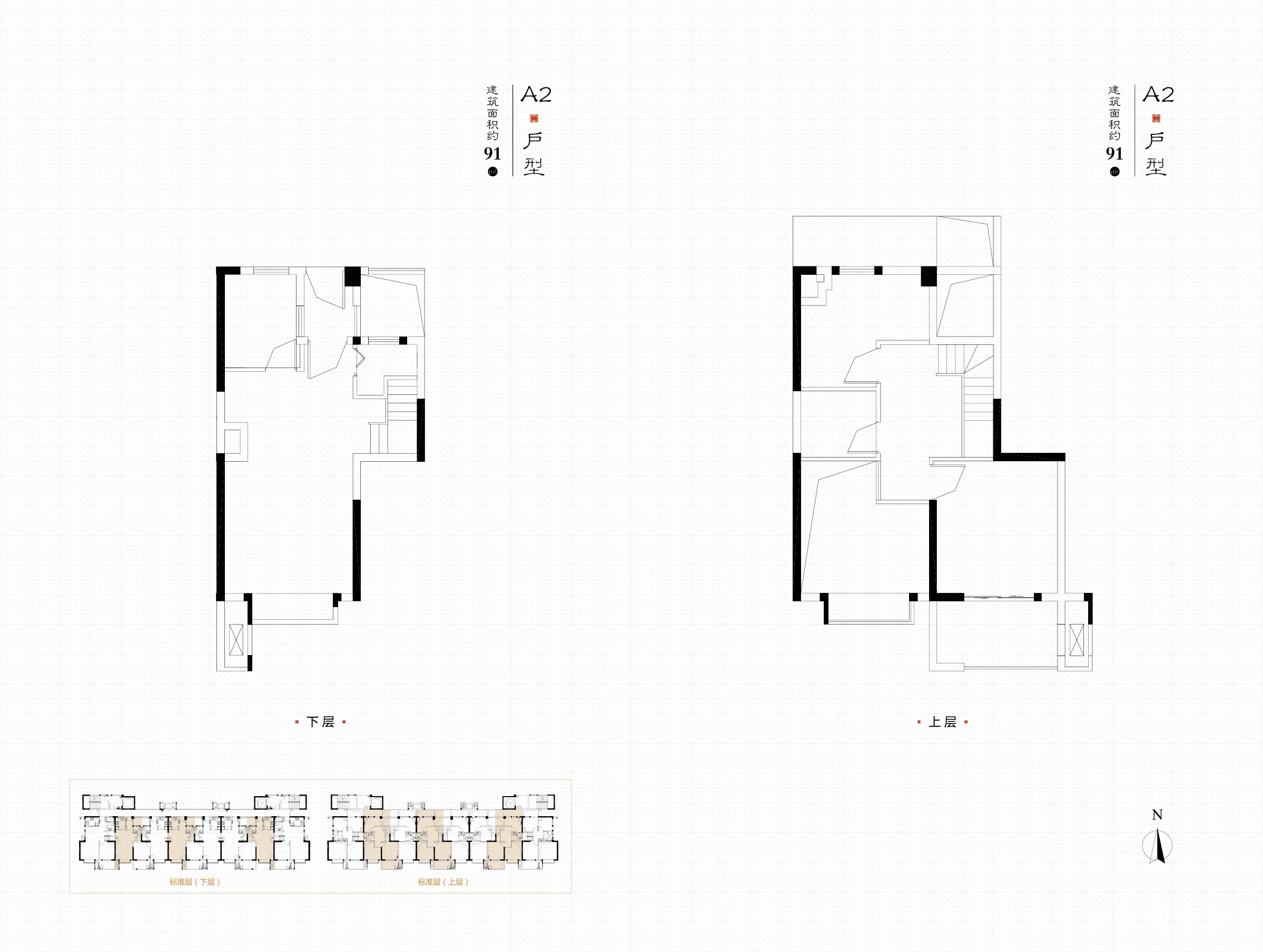 4室2厅2卫-A2户型 建筑面积约91㎡