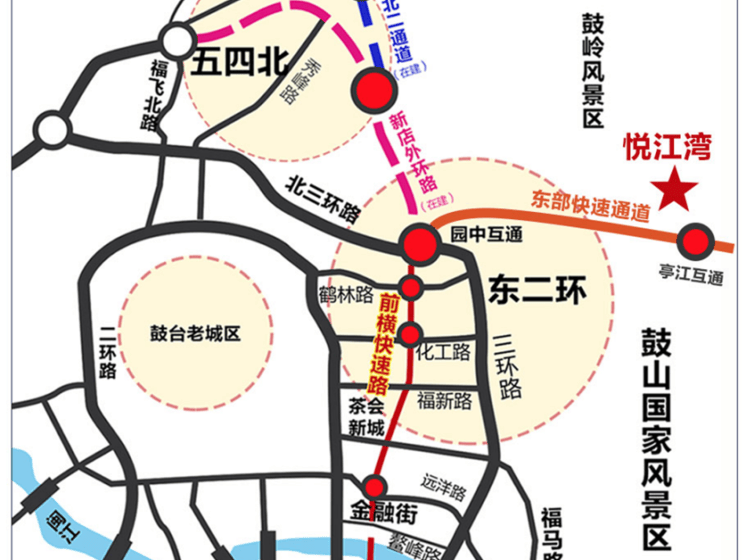 福州东部快速通道(已通车):一期全长约16.7公里,亭江直通东二环,设双向六车道,设计时速约80km/h。