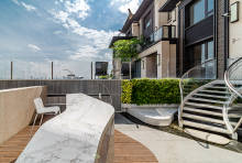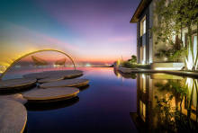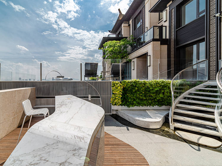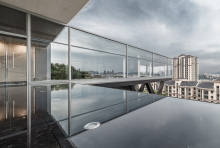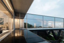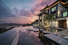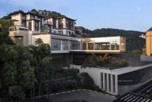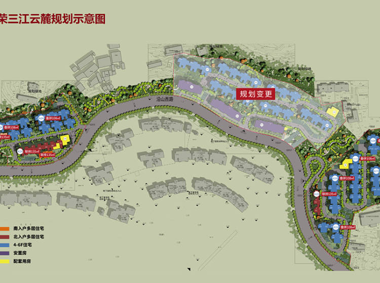 正荣三江云麓项目位于天马山山腰,直面闽江、乌龙江、马江三江入海口。总占地54亩,总建筑面积3万6千方,分为3个地块,沿沿山西路东西分布,地块一,地块二,地块三(配合激光笔指出);共规划15栋4-6层联排或叠拼墅,地块一3栋,地块二6栋,地块三6栋。全区在沿山西路有三个出入口,分别在地块一东南角,地块二中段,以及地块三西北处,分区管理,静谧独立,地块之间由景观通廊关联,这样的设计横向视野开阔,也确保拥有足够私密感与空间感的同时,可以更直接地欣赏三江口波澜壮阔的景观。