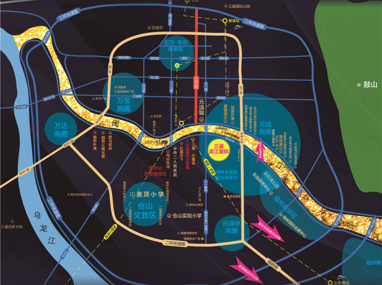 商业:金融街万达商圈、闽江北CBD、国际满社区风情商业街、超3000亩江南CBD