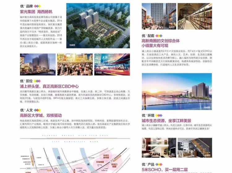 紫光•浦上商业小镇踞守高新区浦上桥头,高新大道与浦上大道交界处,位处高新区核心商圈,多维立体交通,通达全城。项目占地面积40413平方米,总建筑面积141220.64平方米,规划有4栋5米层高SOHO及8栋合院式商墅,打造“人文、艺术、创意、生活”为主题概念,融入福州当地传统文化创意,具有闽派特色的文创商业小镇,成就高新区板块独有文化名片。