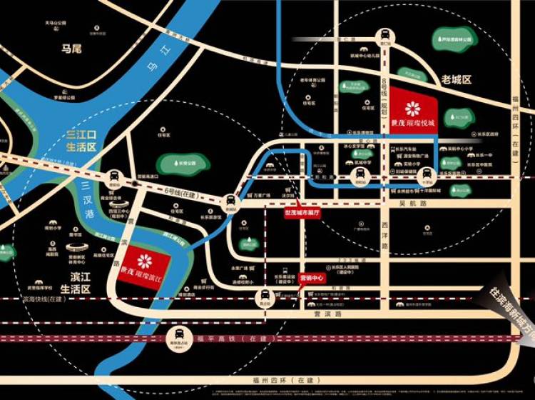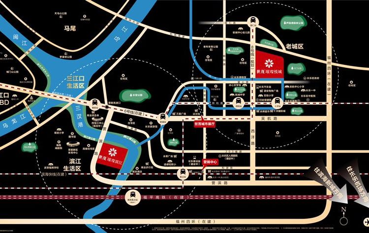 项目的路网四通八达,从项目出发10分钟便可到达营前高速出入口;道庆洲大桥通车后,20分钟便可到达海峡会展中心或马尾自贸试验区;另外,走乌龙江大桥可直达福州南站,走青州大桥可直通马尾。项目周边还设有体育中心东门、马头双峰公交站,随着新区的发展,未来将有更多的公交路线开通,大大方便您及家人后期的生活。项目北侧的地铁六号线预计2020年底通车,线路从长乐滨海新城至福州海峡国际会展中心,乘坐地铁6号线至福州,还可换乘地铁1、4、5号线,畅通福州全城。 6号线对长乐意义重大,是长乐融入大福州发展的基础,届时我们可乘坐地铁,半小时内即可前往机场、福州市区,真正形成福州市区30分钟的黄金生活圈。