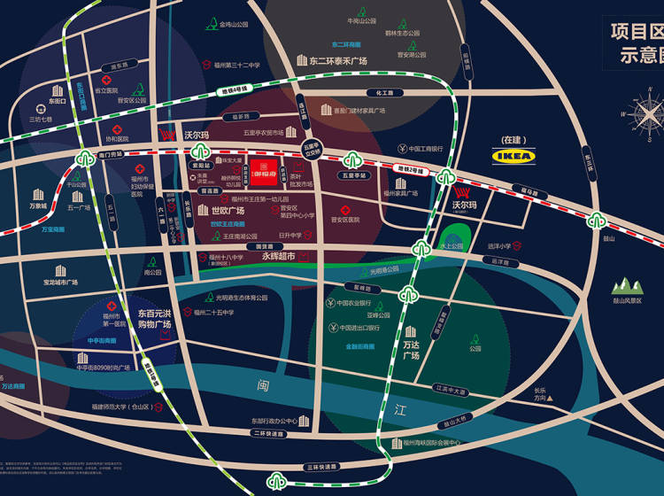 项目周边商业氛围浓厚,项目西面不到800米既是世欧广场,步行即可到达,北面的泰禾广场及南面的台江万达广场都是福州最炙手可热的商圈,驱车几分钟时间即可到达。此外,我们项目三公里辐射范围内包含了东街口商圈、五四路CBD及全国首个宜家综合体。