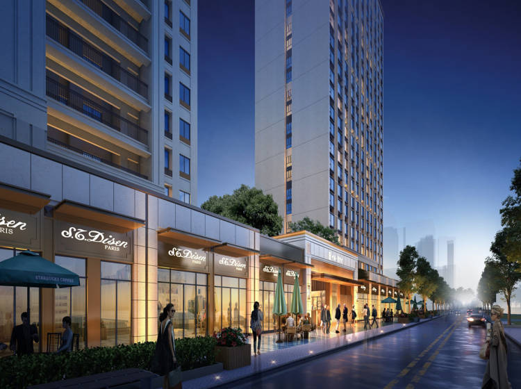 商业街、东方意境园林、灯光慢跑道、全龄儿童乐园等