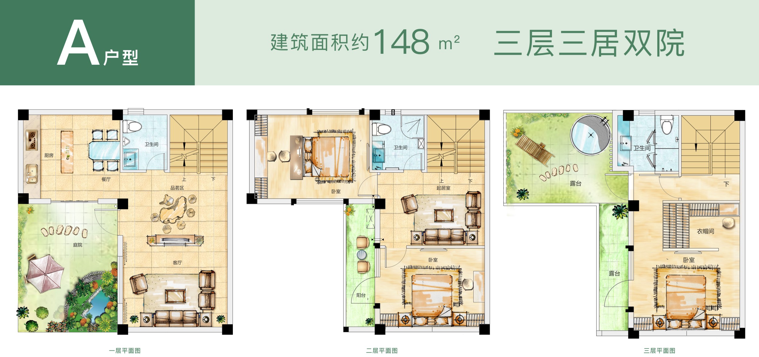 90%面积用于打造配套,分成“运动乐活类”、“田园观光类”和“休闲娱乐类”三大板块,形成“一岛、两溪、五园、二十四景”,满足小镇居民与观光客回归自然和享受运动的需求。