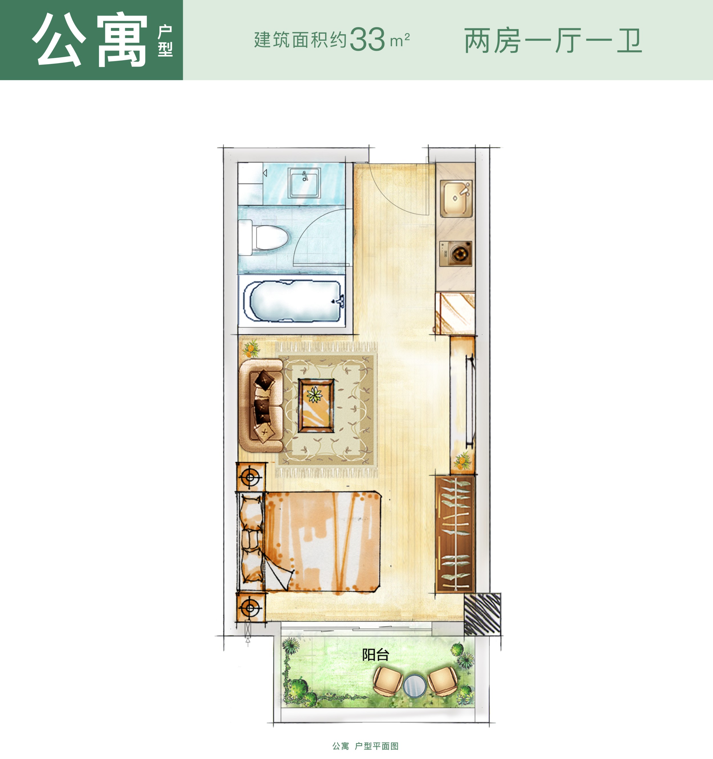 2室1厅1卫-公寓户型 建筑面积约33㎡