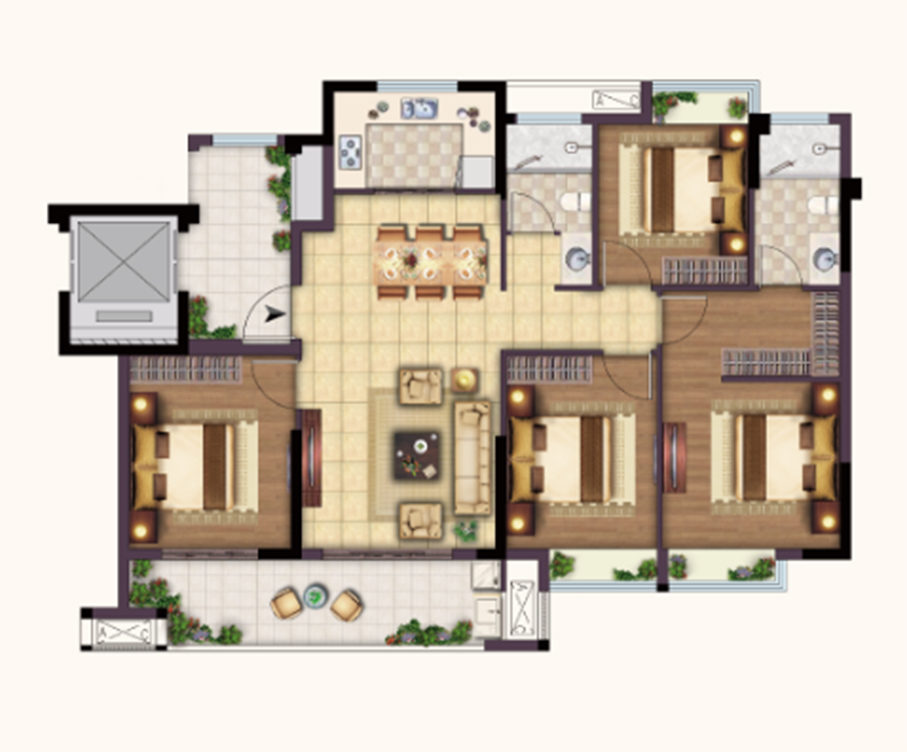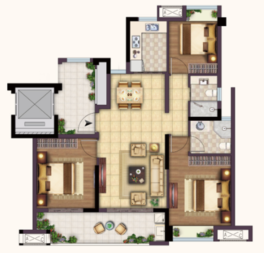 社区医院、休闲平台,阅读空间,童趣天地,儿童乐园,还有羽毛球场园、超高绿化、470m长的跑道空间